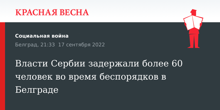 Более 60 человек были задержаны сербскими властями во время беспорядков, спровоцированных сторонниками ЛГБТ-идеологии, заявила премьер-министр Сербии Ана Брнабич, 17 сентября выступая перед журналистами.