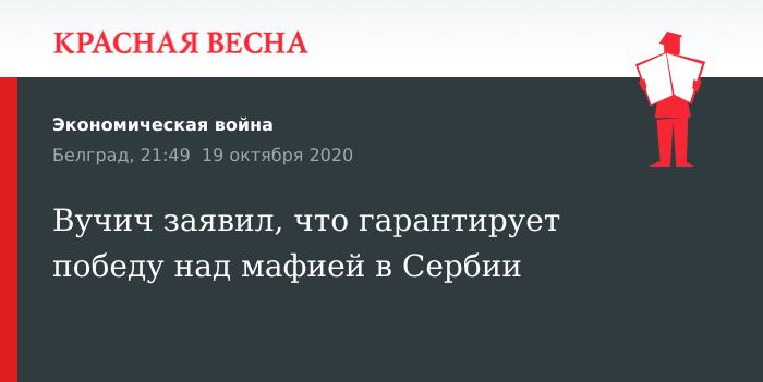 Мафия будет побеждена заявил, президент Сербии Александр Вучич, 19 октября в своем профиле Instagram.