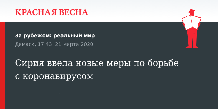Напомним, Сирия остается единственной страной региона, где не зарегистрированы случаи заражения вирусом SARS-CoV-2. В Иордании коронавирусом заразились 85 человек, в Израиле — 705, в Ливане — 177, в Турции — 670 и в Ираке — 208.