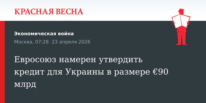 Напомним, что ЕС утвердил кредит для Украины в €90 млрд (7,9 трлн руб.) на два года: €45 млрд (3,95 трлн руб.) в 2026-м и €45 млрд (3,95 трлн руб.) в 2027-м. €60 млрд (5,3 трлн руб.) пойдет на военные цели, €30 млрд (2,65 трлн руб.) — на бюджет. Из них две трети будут направлены на вооружение и зарплаты силовикам, треть — на пенсии и зарплаты бюджетникам. Украинские СМИ указывают, что этого недостаточно для полного финансирования военных нужд.