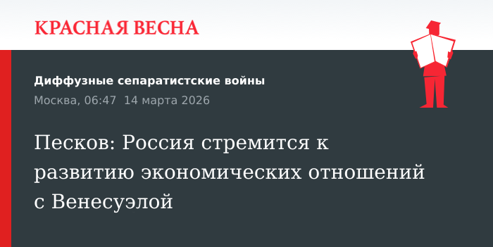 Песков: Россия стремится к развитию экономических отношений с Венесуэлой