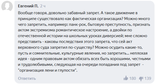 При этом пользователи Сети считают, что запрет нужно было ввести гораздо раньше, так как упомянутое криминальное движение существует уже довольно давно.