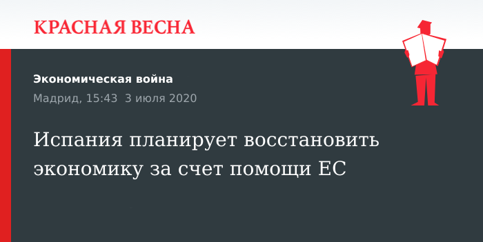 Напомним, в Испании от коронавируса погибло более 10% заболевших. Правительство сообщало о росте безработицы в стране на 19% и ожидаемом падении экономики на 9,2%. Ожидается, что экономика страны восстановится только к 2023 году.