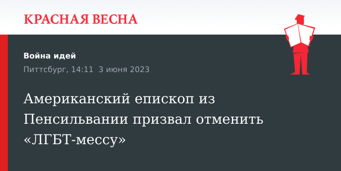 «Мессу гордости», которая должна была состояться в католическом университете в епархии Питтсбурга (штат Пенсильвания), призвал отменить местный епископ Дэвид Зубик, 2 июня сообщает издание Daily Signal аналитического центра The Heritage Foundation в Вашингтоне.