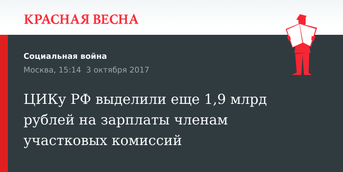 ЦИКу РФ выделили еще 1,9 млрд рублей на зарплаты членам участковых комиссий
