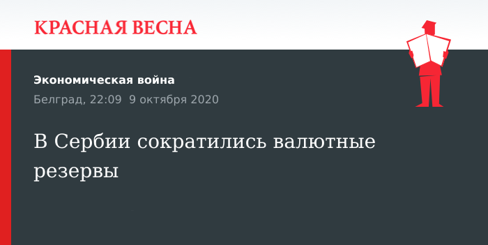 Валовые валютные резервы Сербии за месяц сократились на 338,8 млн евро, 9 октября сообщил Национальный банк Сербии