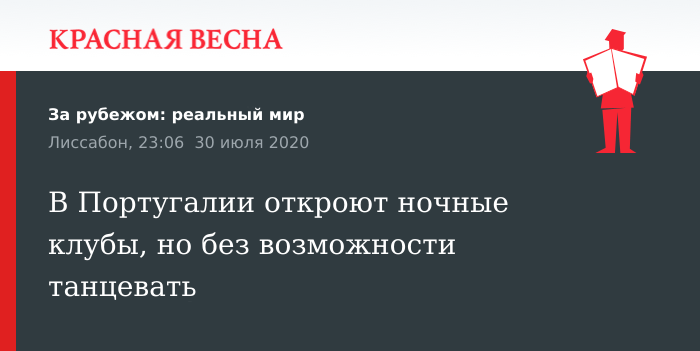Также сообщается, что все развлекательные заведения в столице Португалии, Лиссабоне, будут работать максимум до восьми вечера. А в других частях страны разрешат работать барам и клубам до часу ночи.