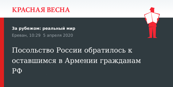 Как сообщало ранее ИА Красная Весна, 3 апреля в аэропорту «Звартноц» был отменен рейс Ереван-Москва. В этот же день пассажиры провели акцию протеста. 4 апреля протест продолжился у здания российского посольства в Ереване.