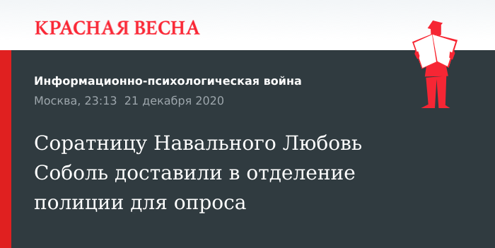 Соратницу оппозиционера Алексея Навального, юриста Фонда борьбы с коррупцией (НКО, выполняющее функции иностранного агента) Любовь Соболь опрашивает полиция, сообщает РИА Новости 21 декабря со ссылкой на ее адвоката Владимира Воронина.
