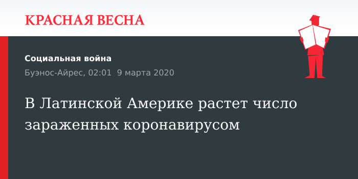 Отметим, первой страной в Латинской Америке, где был подтвержден коронавирус, стала Бразилия, там его выявили в конце февраля.