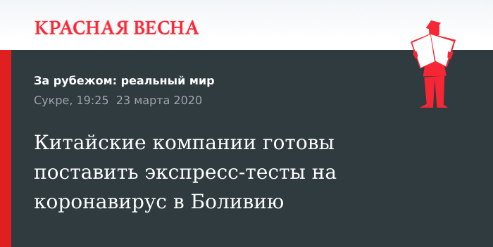 Китайские компании готовы поставить экспресс-тесты на коронавирус в Боливию
