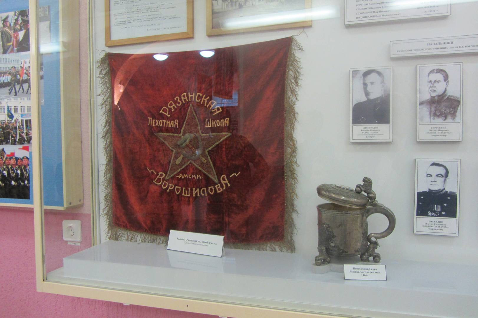 В зале, рассказывающем об истории «рязанского десантного», также размещены исторические реликвии: среди них вымпел «Рязанской пехотной школы», созданной 13 ноября 1918 года и ставшей предтечей знаменитого РВВДКУ (Рязанского высшего воздушно-десантного командного училища имени В. Ф. Маргелова).