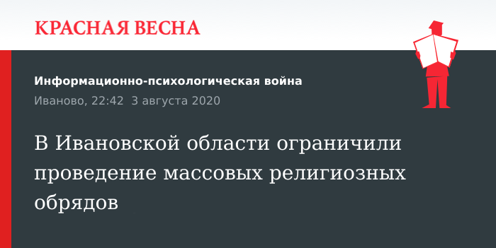 Постановление, ограничивающее проведение массовых религиозных обрядов и церемоний различных конфесий, издал главный государственный санитарный врач по Ивановской области 3 августа. Постановление опубликовано на сайте регионального управления Роспотребнадзора.