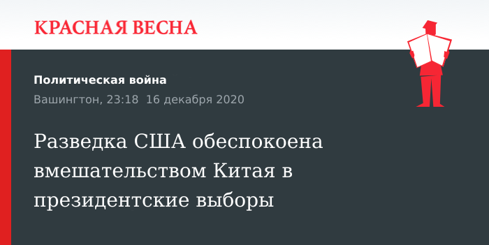 Разведка США обеспокоена вмешательством Китая в президентские выборы