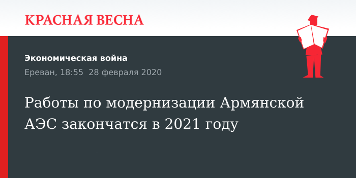 Работы по модернизации Армянской АЭС закончатся в 2021 году