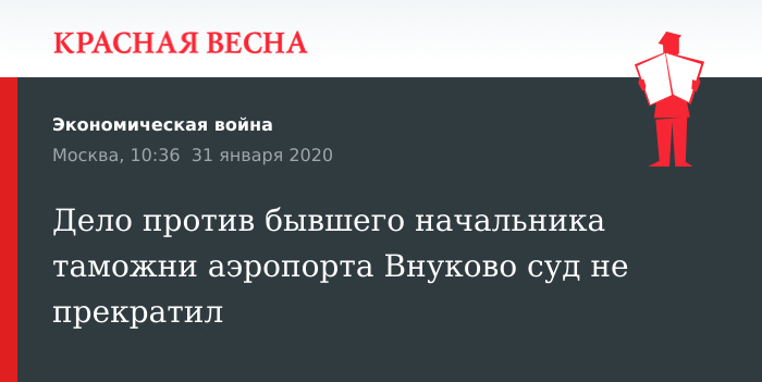 Дело против бывшего начальника таможни аэропорта Внуково суд не прекратил