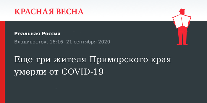 Еще три жителя Приморского края скончались от последствий заболевания COVID-19, сообщает 21 сентября пресс-служба краевого правительства.
