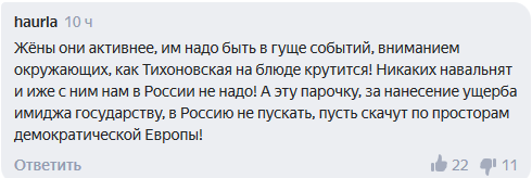 Пользователь с ником haurla высказала пожелание Навального с его женой «в Россию не пускать».