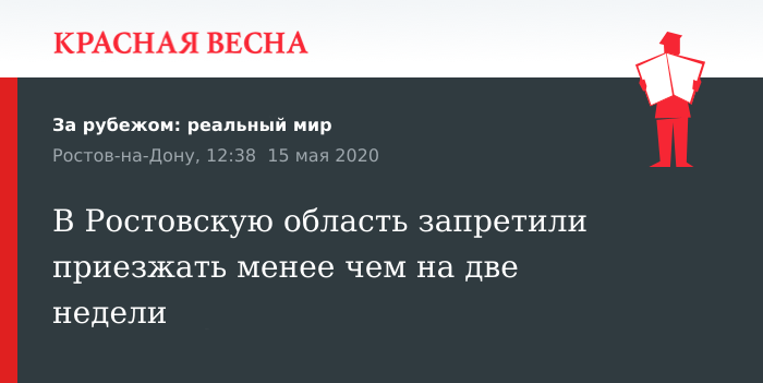 Жителям из других регионов страны запретили приезжать в Ростовскую область на срок менее 14 дней, об этом 15 мая сообщает Ugpressa.
