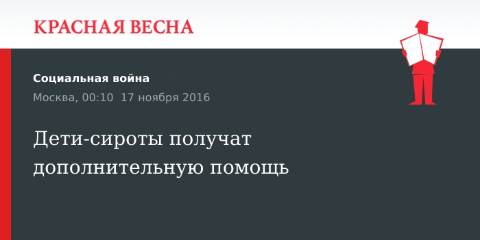 Напоминаем, что вопросы помощи детям-сиротам периодически вносятся в повестку работы Президента Владимира Путина и Правительства РФ. Так в 2014 году сиротам были возвращены льготы и квоты для обучения в федеральных высших учебных заведениях страны, а в июне 2016 года Президентом России было дано поручение Счетной Палате и Генпрокуратуре проверить расходование средств на строительство жилья для сирот.