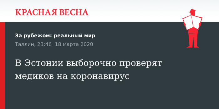 Напомним, в Эстонии тестирование на коронавирус проводят шесть лабораторий в четырех городах. С 31 января, когда начали тестирование, до 18 марта обработано 2020 тестов, выявлено 258 инфицированных.