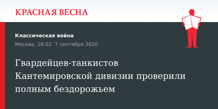 Водители-танкисты из Кантемировской танковой дивизии гвардейской танковой Краснознаменной армии Западного военного округа (ЗВО) успешно выполнили учебные упражнения по вождению боевых машин в услових полного бездорожья, 6 сентября сообщила пресс-служба Минобороны РФ.