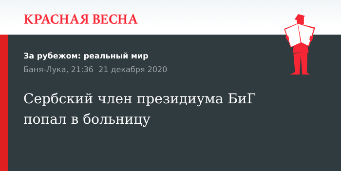Председатель и член президиума в Боснии и Герцеговине от боснийских сербов Милорад Додик попал в больницу с двусторонней пневмонией, 21 декабря сообщает RTS.
