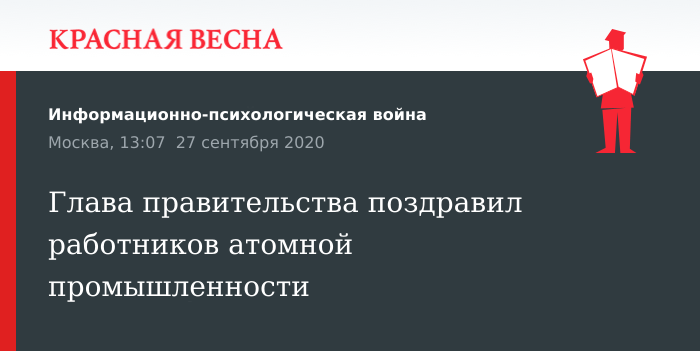 Обращение по случаю их профессионального праздника к работникам атомной промышленности председателя правительства РФ Михаила Мишустина 27 сентября размещено на сайте правительства.