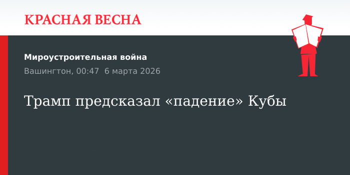 Напомним, 2 марта издание The Atlantic опубликовало статью, автор которой утверждал, что следующей «целью» Трампа может стать Куба. Как выразился анонимный представитель администрации, «президент чувствует, что поймал волну» после недавних военных операций США.