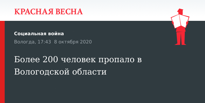 246 человек пропало с начала 2020 года в Вологодской области, сообщают 8 октября Вести Вологда.