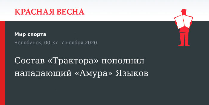 Челябинский «Трактор» выменял у хабаровского «Амура» нападающего Никиту Языкова, 6 ноября сообщает пресс-служба челябинцев.