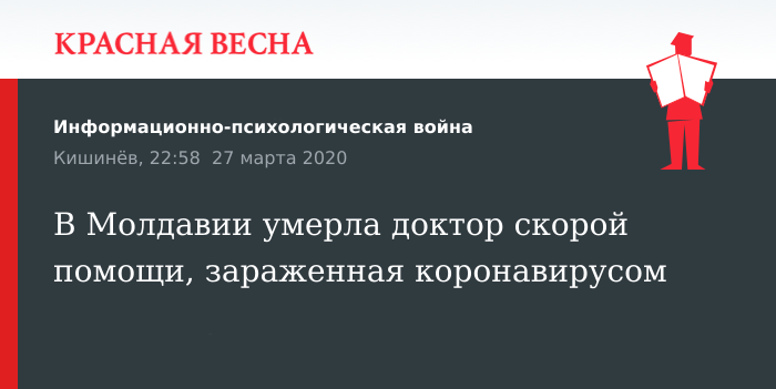 Пресс-служба также сообщает, что на 27 марта в системе здравоохранения Молдавии заражены 36 человек. Из них 9 врачей, 19 фельдшеров и медицинских ассистентов, 7 медсестер и один водитель.