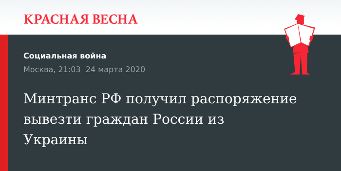 Министерство транспорта России получило распоряжение в срок до 25 марта организовать вывоз граждан Украины из Российской Федерации и российских граждан из Украины в Россию.