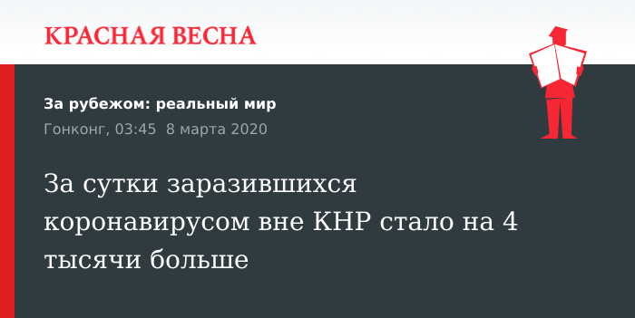 За сутки заразившихся коронавирусом вне КНР стало на 4 тысячи больше