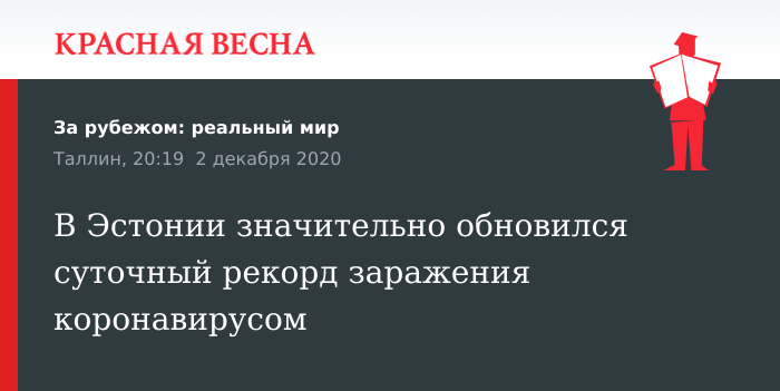 Напомним, предыдущий антирекорд в Эстонии был зафиксирован 26 ноября и составил 415 новых случаев заболевания. Правительство республики призывает население ответственно относиться к соблюдению введенных ограничений во избежание полного закрытия страны.