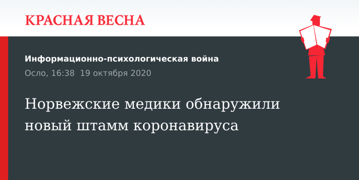 «Мы не знаем, откуда здесь взялся этот вирус. До сих пор подобных вариантов вируса в Норвегии не было», — заявил Туве Росстад, главный врач города Тронхейм, в котором был обнаружен новый штамм коронавируса.