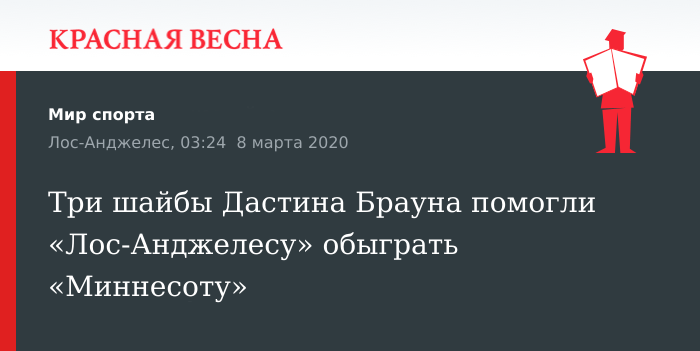 Три шайбы Дастина Брауна помогли «Лос-Анджелесу» обыграть «Миннесоту»