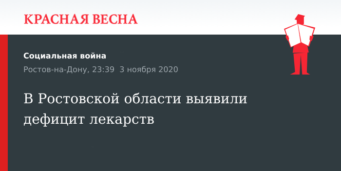 В Ростовской аптечной сети выявлен недостаток ряда сильнодействующих лекарств и препаратов для лечения ОРВИ, 3 ноября сообщает региональное издание «Наше время».