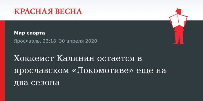 Продление контракта на двухлетний срок стало результатом переговоров ярославского хоккейного клуба «Локомотив» и 22-летнего защитника команды Александра Калинина, 30 апреля сообщает пресс-служба клуба.