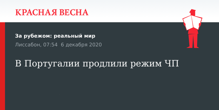 Напомним, Португалия не так сильно пострадала во время первой волны коронавируса, как ее соседи по югу Европы. Однако осенью, во время второй волны, число случаев заражения быстро начало увеличиваться. С 9 ноября в стране был введен режим чрезвычайного положения. Первоначально предполагалось, что он будет действовать до 23 ноября.