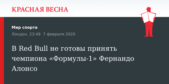 В Red Bull не готовы принять чемпиона «Формулы-1» Фернандо Алонсо