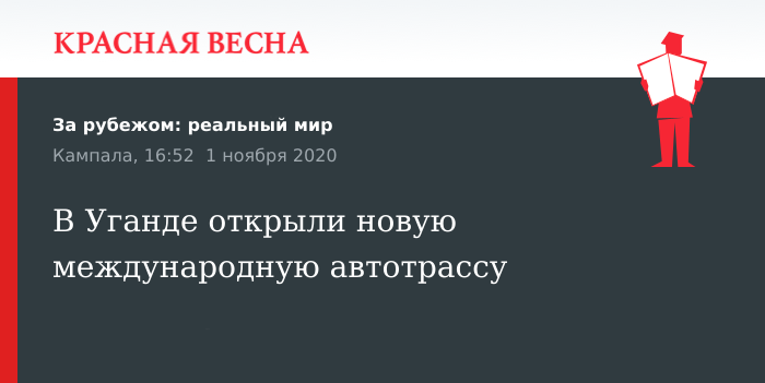 Китайская сторона завершила строительство автомобильной дороги протяженностью 104 километра, соединяющую восточную часть Уганды с Кенией, 1 ноября сообщает Синьхуа.