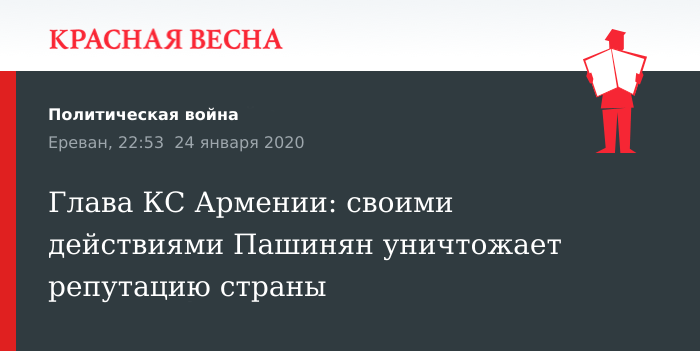 Глава КС Армении: своими действиями Пашинян уничтожает репутацию страны