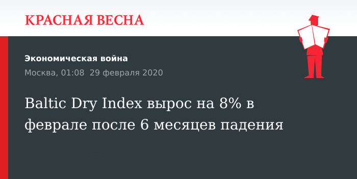 Один из самых объективных индикаторов активности мировой экономики Baltic Dry Index вырос в феврале 2020 года после 6 месяцев падения, 28 февраля сообщает онлайн-портал Trading Economics.