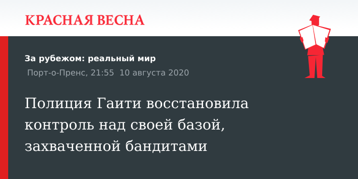 После нескольких часов вооруженного противостояния гаитянская национальная полиция (PNH) восстановила контроль над базой правоохранителей в столице, оккупированной вооруженными преступниками, заявил глава PNH Алекс Жан-Пьер Луи, 10 августа сообщает Prensa Latina.