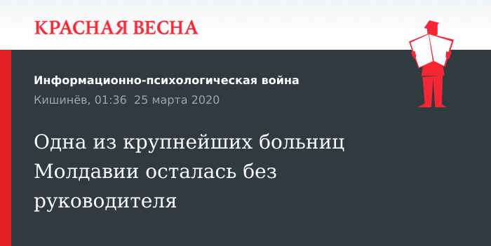 Напомним, на 24 марта в Молдавии было выявлено 125 случаев заражения коронавирусом. В больницах с подозрением на заражение находятся 105 человек. Власти задействуют армию для мероприятий по противодействию распространению коронавируса.