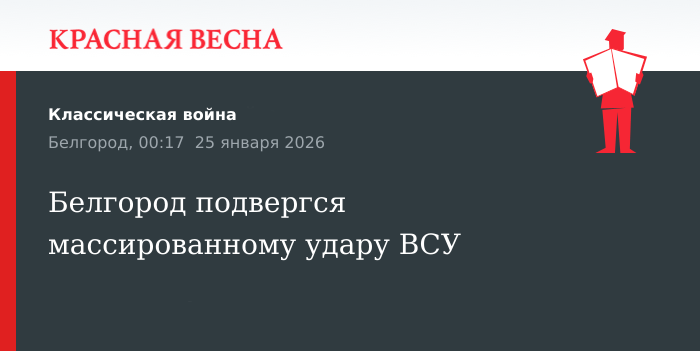 Самый массированный обстрел Белгорода совершили ВСУ, сообщает 24 января пресс-служба регионального оперативного штаба в Telegram-канале.