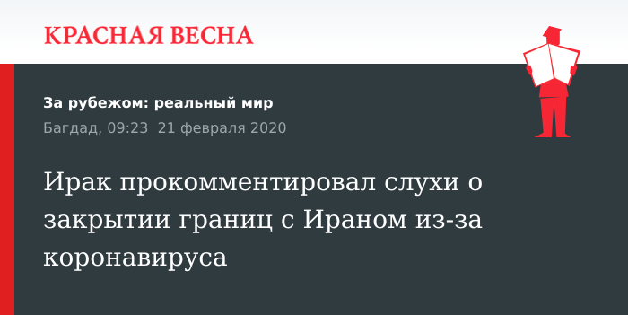 Представитель министерства здравоохранения Ирака Сейф аль-Бадр в своем заявлении в четверг, 20 февраля, заявил, что иракским пограничникам не поступал приказ о закрытии границы с Ираном из-за вспышки коронавируса на иранской территории.