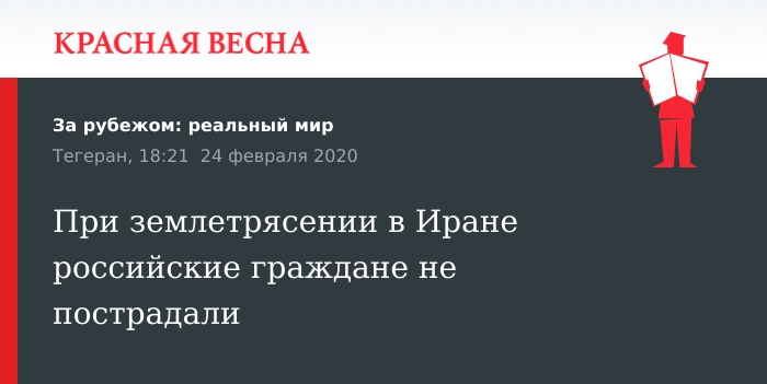 Российских граждан нет среди пострадавших при землетрясения в провинции Западный Азербайджан на северо-западе Ирана, 24 февраля сообщается на официальной странице посольства России в Тегеране в Twitter.