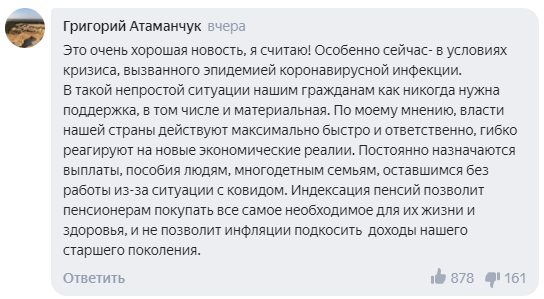 Большинство пользователей Сети отреагировали на обещание индексации без энтузиазма. Многие граждане посетовали в комментариях на то, уровень пенсий в России очень низок.